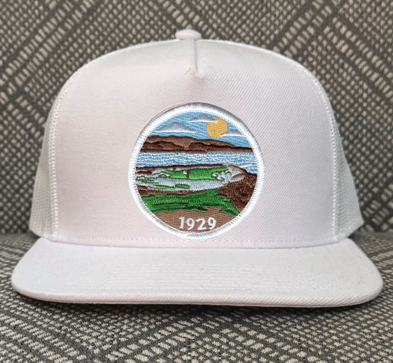 The 1929 hat celebrates the 1929 US Amateur at Pebble Beach and commemorates the most famous version of Pebble Beach’s 7th hole. A renovation of the course in 1929 was overseen by Dr Alister MacKenzie and performed by US Amateur Champion, Chandler Egan created a golf hole surrounded by sand and sea.