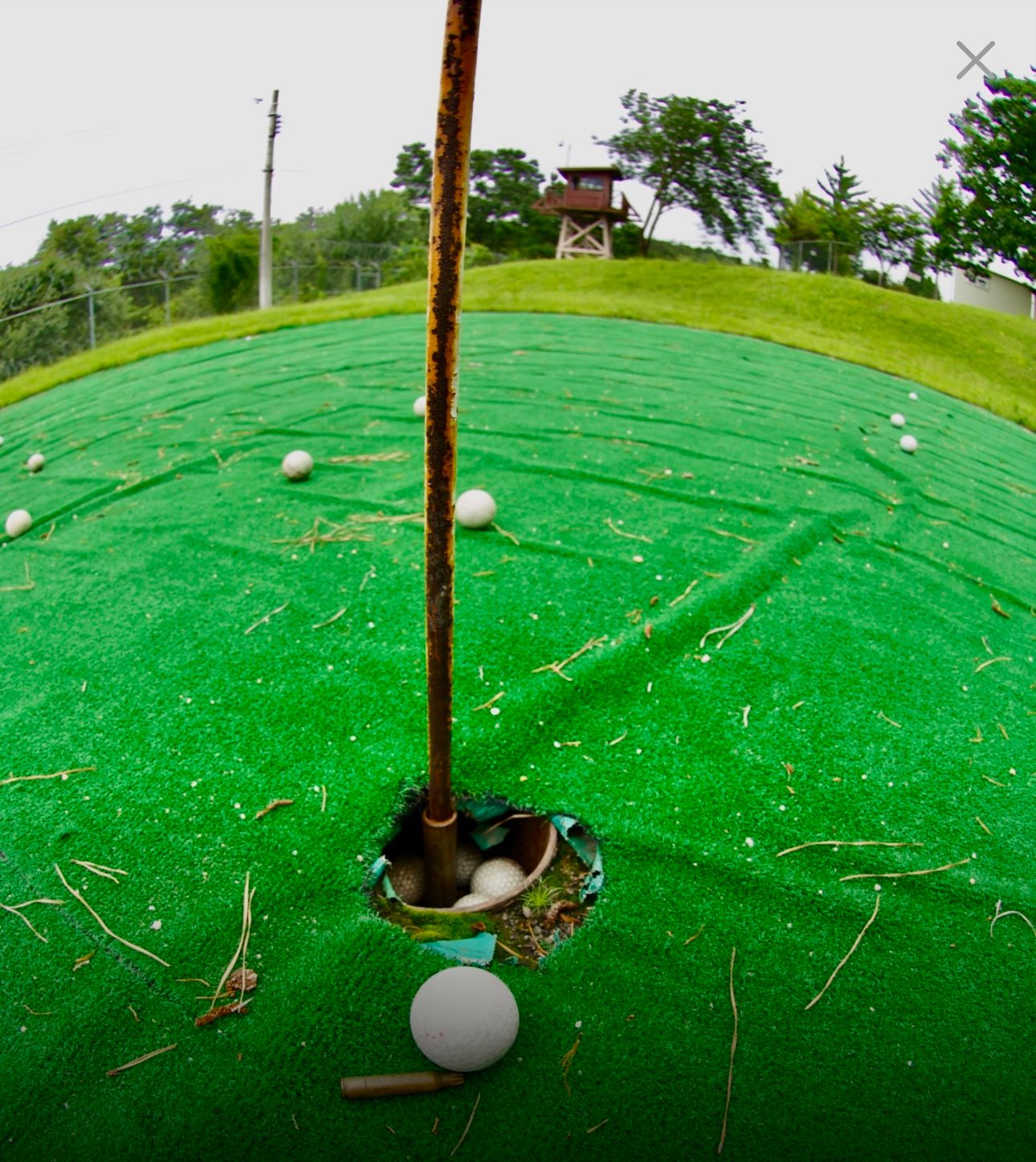 The “course” here consists of a single par-3, about 192 yards long. Forget manicured fairways and Augusta-style azaleas—the green is a patch of artificial turf, surrounded by sandbags and barbed wire, like something out of a dystopian mini-golf course. And if you miss the green? Well, let’s just say this isn’t the place to go ball-hunting. A sign at the tee box puts it bluntly: “Danger. Do not retrieve balls from the rough. Minefield.”